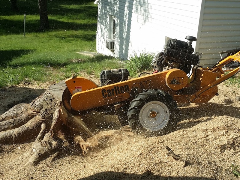 After a tree is removed, the stump can remain as an obstacle in the yard. Branson’s Tree Service grinds stumps below ground level so the area can be used again.